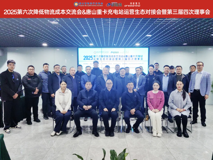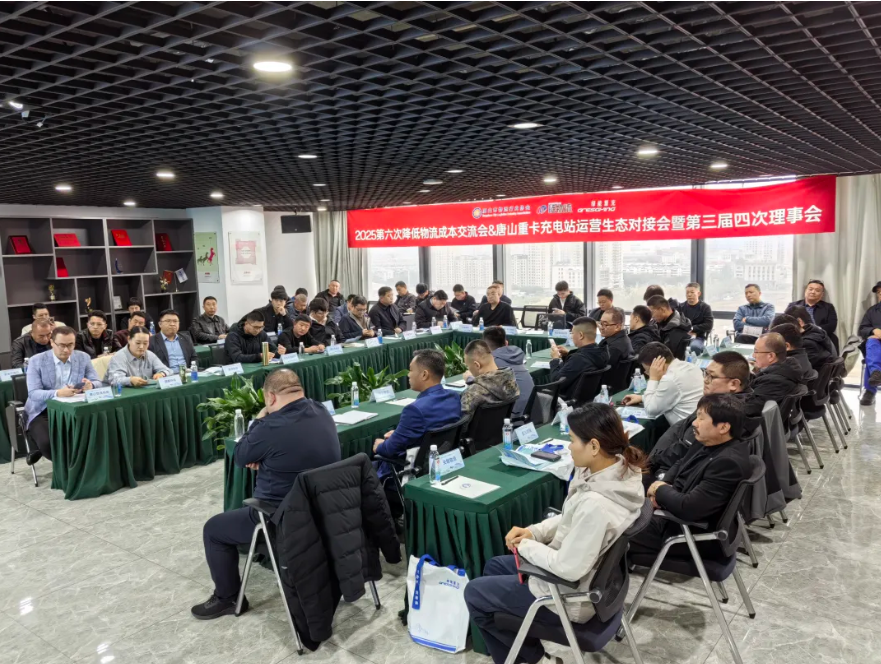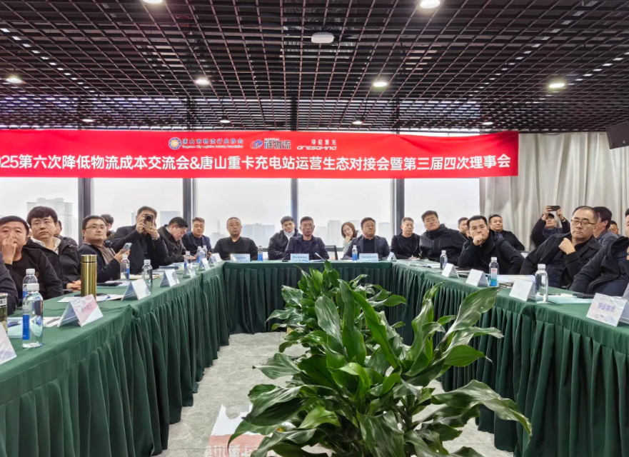 2025年10月30日,由唐山市物流行业协会主办的“2025第六次降低物流成本交流会&唐山重卡充电站运营生态对接会暨第三届四次理事会”在唐山顺利召开。本次会议汇聚了行业协会领导、专家学者及40余家物流与新能源企业代表,共同围绕重卡充电基础设施高效运营、物流行业降本增效等议题展开深入交流与探讨。