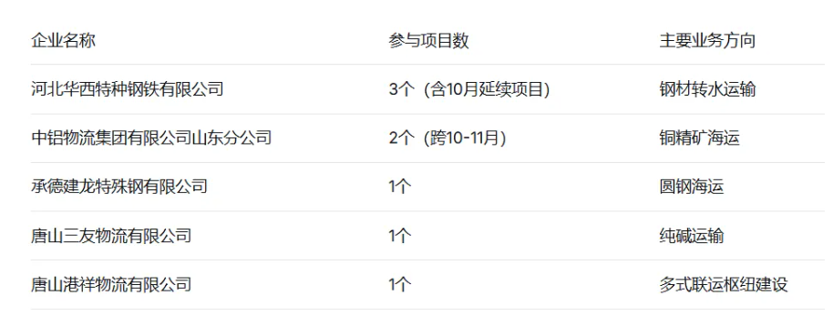 分析:河北华西特种钢铁有限公司在钢材水运方面需求持续活跃;中铝物流在有色金属海运领域布局稳定。