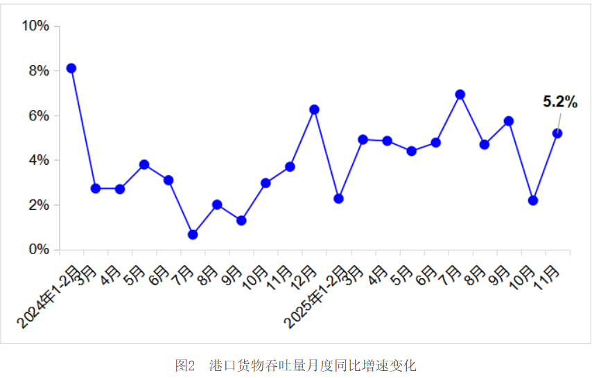 11月,交通运输经济运行总体平稳,货运量、跨区域人员流动量稳步增长,港口货物吞吐量增长较快,交通固定资产投资规模保持高位。