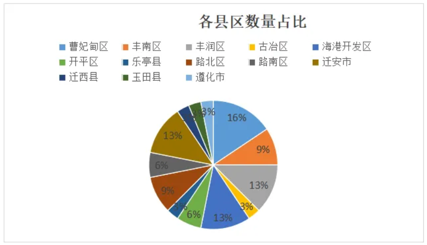 从分布的地区来看,曹妃甸区5家,占比15.63%;丰润区、海港开发区、迁安市均是4家,各自占比12.5%;丰南区、路北区各是3家,分别占比9.38%;开平区、路南区均是2家,占比6.25%;玉田县、迁西县、古冶区、遵化市、乐亭县各是1家,分别占比3.13%;从数据可以看出,曹妃甸区是5家,数量最多,由此可以看出随着钢铁企业布局到沿海港口地区,配套的物流企业也纷纷前往相关地区运营业务并注册公司,给货主企业做好配套运输服务。