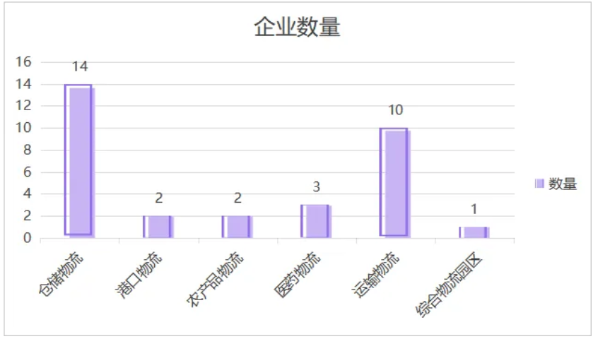 从主营业务情况来看,企业涉及到仓储物流的是14家,占比43.75%;运输物流的10家,占比31.2%;农产品物流2家,占比6.25%;医药物流3家,占比9.38%;港口物流2家,占比6.25%;综合物流园区1家,占比3.13%。从数据可以看出,主营业务仓储物流占比最大,其次是运输物流,第三是医药物流,符合唐山目前的相关物流产业分布情况。