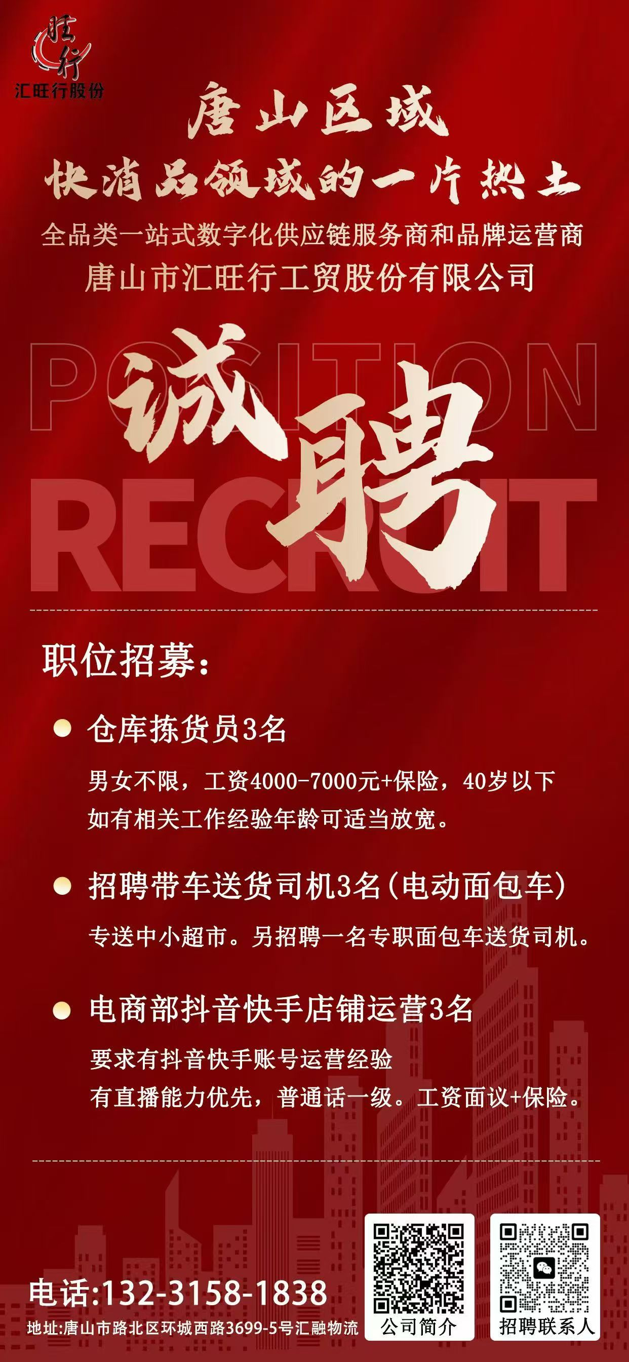 会员动态:唐山汇旺行诚聘电商运营专员等英才