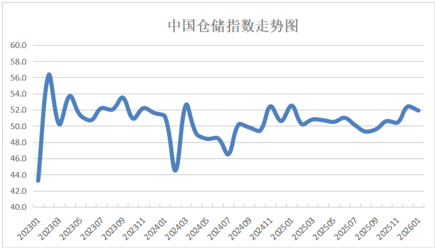 中国物流与采购联合会与中储发展股份有限公司联合调查的中国仓储指数,2026年1月份为51.9%,较上月下降0.5个百分点。