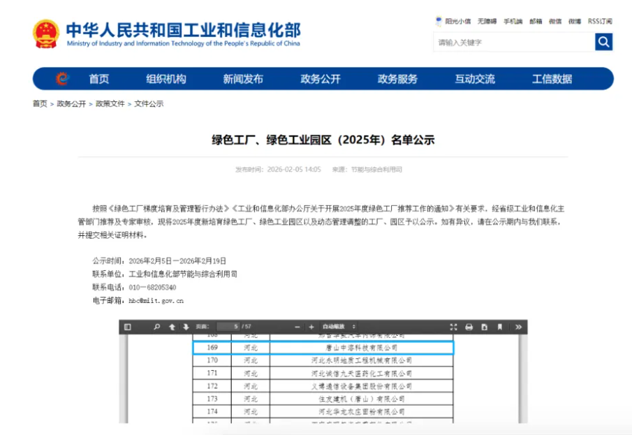 喜报:唐山中溶荣获“国家级绿色工厂”认证! 2026/3/9