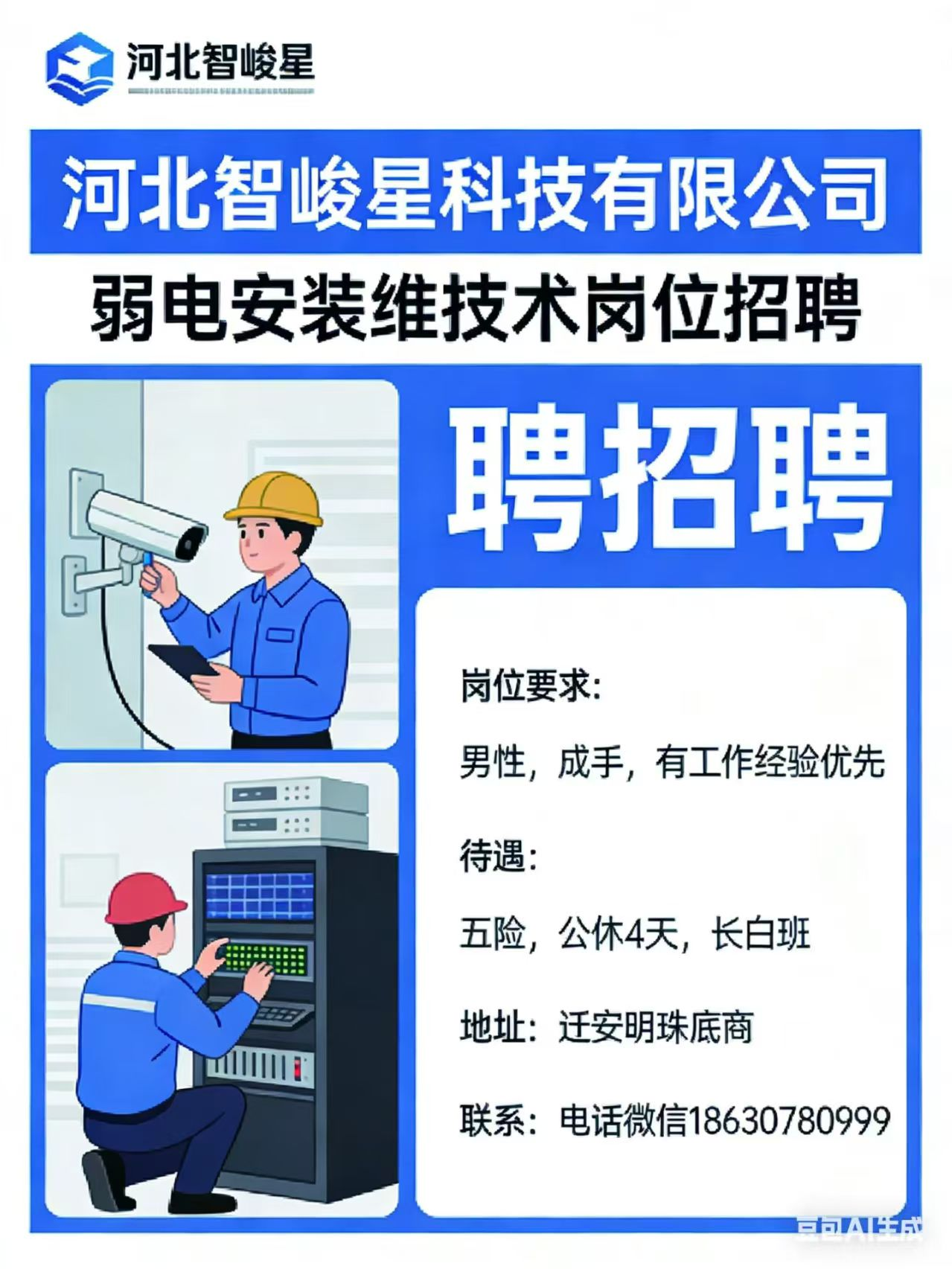 河北智峻星科技有限公司 诚聘【弱电安装运维技术】